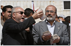 Galloway handing over cash to Ziad al Zaza of Hamas in Gaza, March 2009