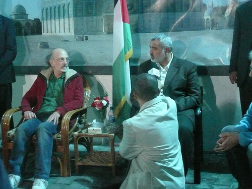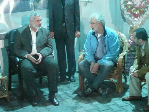 Here is Ismail Haniyeh making nice with Mike Cushman, a Research Fellow at the London School of Economics.