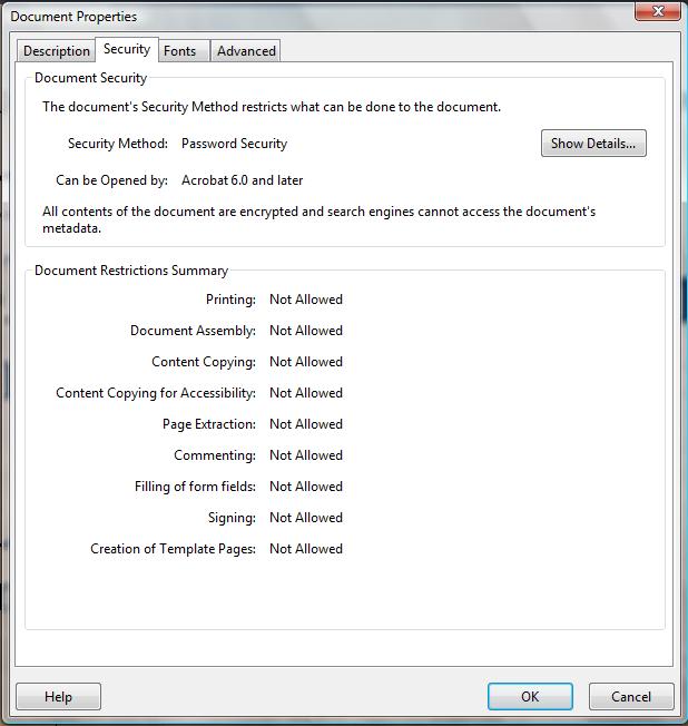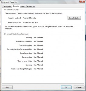 In fact, just about every security setting possible was applied. Which is kind of strange – you’d think the authors would want us all to read their sterling work.