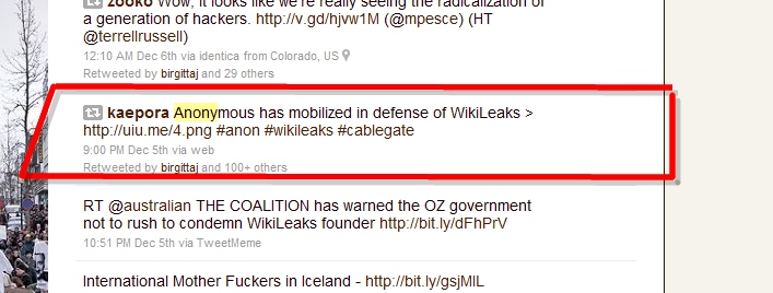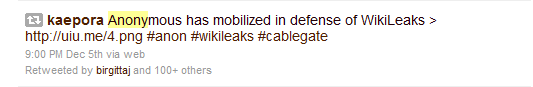 This looks very much like a “core Wikileaks volunteer” supporting the internet campaigns of Anonymous, despite Wikileaks’ public words to the contrary.