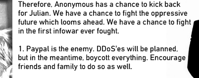 The webpage that Jonsdottir tweets to – Operation Avenge Assange – explicitly boasts of a planned distributed denial of service attack: