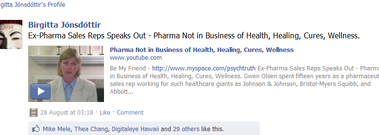 Jonsdottir claims that pharmaceutical companies are not in the business of health and healing: