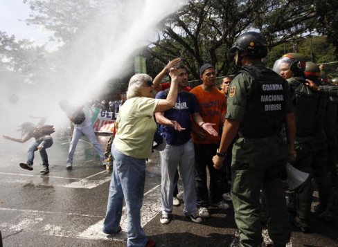 Police and soldiers fired water cannons and plastic bullets Thursday as thousands of students protested against a law passed by Venezuela’s congress that increases government powers over the country’s universities.