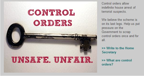 Liberty’s campaign du jour encourages members to write to the Home Secretary asking him to scrap control orders altogether.