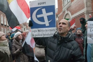 Hizb Ut-Tahrir Britain arrived to take part in an emergency picket at the Egyptian Embassy, but there they met a group of Egyptians “from different political & ideological backgrounds” had already planned to hold a peaceful protest to “show solidarity & support of our fellow Egyptians in our beloved country” who have been protesting in Egypt since Tuesday. Hizb Ut-Tahrir were apparently told very firmly that the embassy protest – like the Egyptian revolution – was to be entirely non-sectarian and that they were not welcome there.