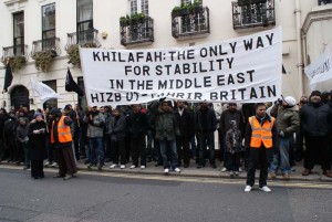 On Saturday the extremist party Hizb ut-Tahrir tried to muscle into a demonstration against Mubarak at the Egyptian embassy in London.
