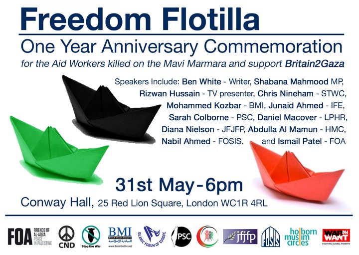 The event will also feature calls for support of the next flotilla. Once again it will be led by Turkish charity IHH, one of the world’s biggest and most enthusiastic funders and promoters of Hamas. The UK side of the operation is being managed by Hamas operatives Mohammed Sawalha and Zaher Birawi.