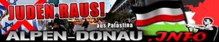 “Alpen Donau” just published a new Logo showing the most urgent problem of the Austrian Neo-Nazis: Palestine. While their antisemitic predecessors demanded “Jews to Palestine”, they go with the times and want their “Jews out of Palestine”. They propagate their preferred method too: with guns.