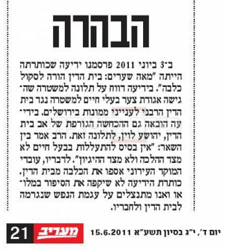 וכן הלאההדבר לא היה ולא נברא. פירסומו הביא לנזק גדול לרבנים ולדיינים העושים מלאכתם בבית הדין בהתנדבות שתים עשרה שנה ברציפות ללא קבלת שכר כלל.