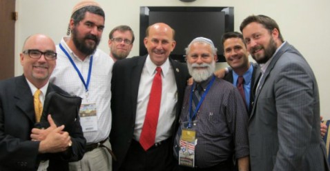 I was reading David Wilder’s report in The Jerusalem Post about his time at the Christians United for Israel (CUFI) convention in Washington (Wilder is the spokesman for the Hebron Jewish community) and I was struck by this photo he posted, with the caption: “Left to right – Mike Isley, David Halvri, Pastor Roman Asbill, Congressman Louie Gohmert, R-Texas, myself, Jeremy Gimpel, Ari Abramowitz.”