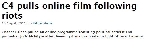 Now Jody McIntyre’s “Q & A With Jody McIntyre, Activist Who Observed Brixton Riots” has been removed by the Huffington Post: