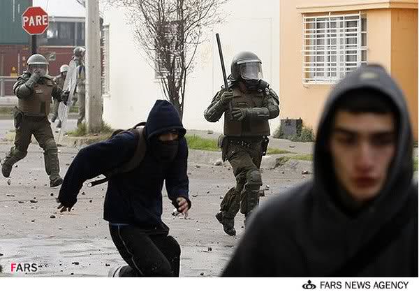 Among the pictures is a one of a man whose face is covered in blood, which the Daily Mail had published in September 2010 alongside a story about security plans ahead of a football match between Manchester United and Rangers. Another photo used by Fars was taken from a 2009 Washington protest in support of the Palestinians. One appeared to be from Chile, and featured a road sign in Spanish. One image showed a street full of police but was actually taken at the Notting Hill carnival in 2008.A picture showing police on horseback was from the miners’ strike in 1984.