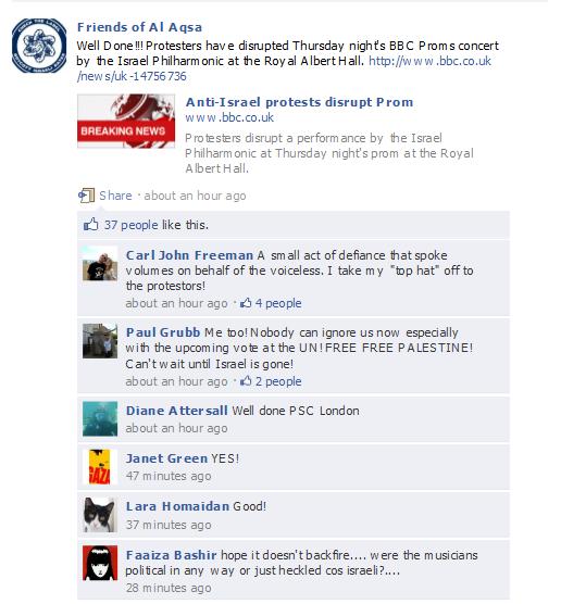 “Can’t believe BBC R3 has signed off on Proms disrupted by Israel haters without comment. BNP and other Jew-haters will be proud”