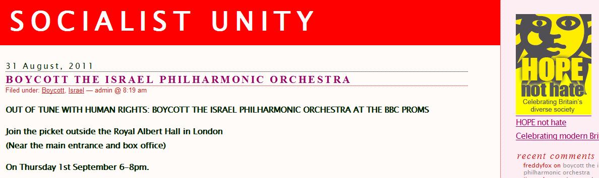 “BBC announce they are playing full broadcast of Israel Phil at #BBCProms on Wednesday aft noon with yobs edited out! Tune in.”