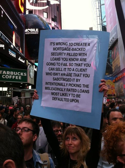 I’ve been among those criticizing the Occupy Wall Street protests for their absence of focus and lack of specific demands. So I was pleased to see one protester getting extremely specific:
