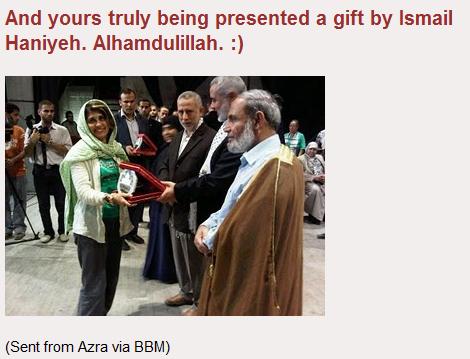 In 2011, Sizer travelled to Malaysia, where he spread lies and untruths about Israel. Viva Palestina Malaysia is run by Azra Banu, who received an award from Hamas chief Ismail Haniyeh in Gaza.
