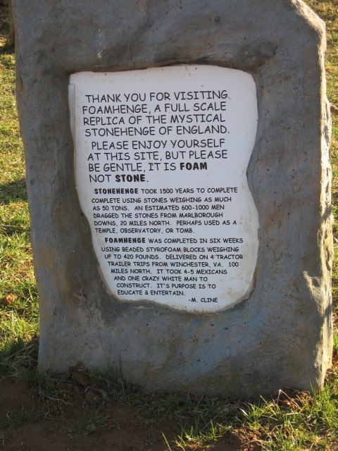 So who needs to shlep all the way to England and pay £7.50 (Children: £4.50) to see Stonehenge when right here in Rockbridge County, Virginia, we have a precise replica called Foamhenge?