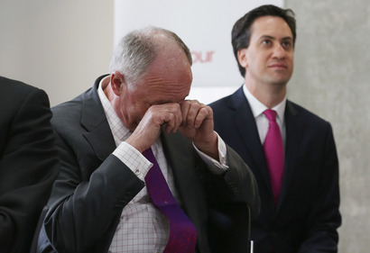 In bizarre scenes, party leader Ed Miliband comforted the 66-year-old ex-mayor by leaning forward and patting him on the back.