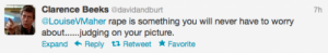Sunny Hundal has posted several good pieces on the topic on Liberal Conspiracy, most recently a painful guest post by a woman who describes her own experience of rape, and a telling little piece about the kind of people who admire Galloway. This nasty tweet was apparently sent by the producer of GG’s podcast: