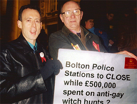 In 1997-98, Allan co-led the successful campaign to free the Bolton 7, who were facing jail for sex acts involving more than two men, under Britain’s antiquated, homophobic sex offence laws.