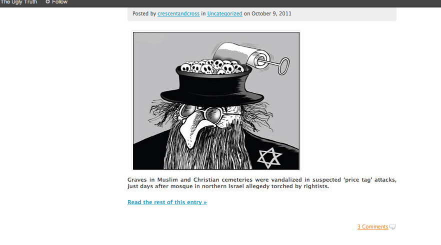 Rev. Dr Stephen Sizer is the vicar of Christ Church Virginia Water, a Church of England church in the Diocese of Guildford. Since July 2011 he’s posted links on his blog or Facebook page to four openly anti-Semitic websites: the Palestine TelegraphThe Ugly TruthVeterans Today, and Window into Palestine. In November he received a warning from his bishop, Christopher Hill, about his link to The Ugly Truth, but he didn’t remove it until 4th January 2012, after being put under pressure by the Jewish Chronicle.