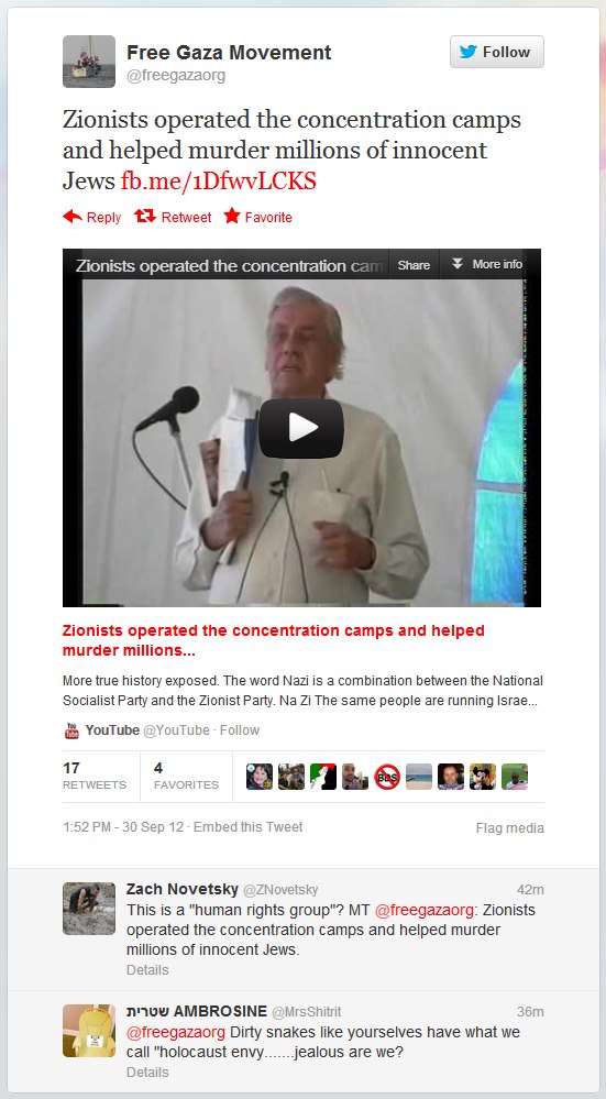 On Sunday, September 30, a disturbing tweet was posted by the Free Gaza Movement’s Twitter account.