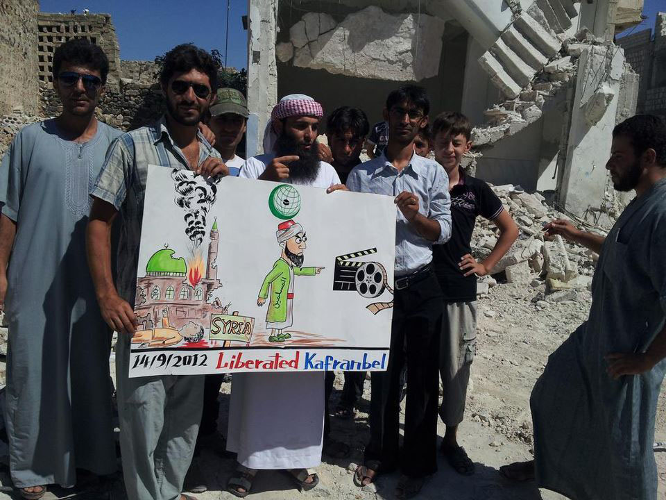 Here’s one from a month ago– at the height of the furor over the “Innocence of Muslims” film– which is self-explanatory. (You can see in the background what their resistance has cost them.)