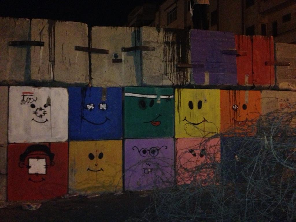 This is how they improved the appearance of a wall that the military built to block the demonstrators from approaching the Presidential Palace, and mocked the regime’s fear of its opponents: