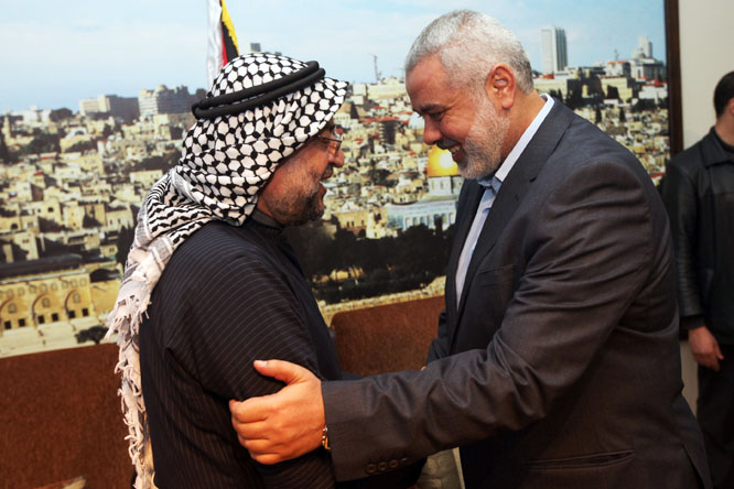 Here is an article on the same event. It reports that Haniyeh crowed over millions of Israeli civilians taking shelter as Hamas rockets rained down on them in the last Gaza war. Of course he did – terrorizing and murdering civilians is exactly what Hamas is all about.