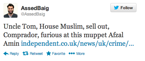 Assed Baig has written for the Huffington Post, The New Statesman and the Islamic Human Rights Commission (more on that organisation, here). He was furious at an article in the Independent that featured Afzal Amin, a former officer in the British Army (now a Conservative PPC). Mr Amin has put his life on the line for our freedoms. In the article, Mr Amin states sensible propositions including: