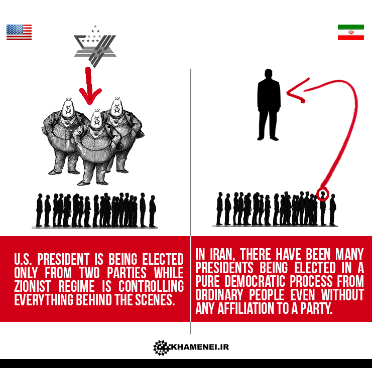 Khamenei’s Facebook page explains in graphic form the difference between an American and Iranian presidential election: