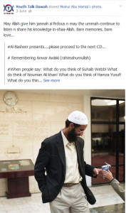 Ibrahim Dar of Interpal Bradford runs a group called “Youth Talk Dawah”. Here “Youth Talk” hails al-Qaeda preacher and recruiter Anwar al-Awlaki. Dar is a big fan of Awlaki. (Click to enlarge.)