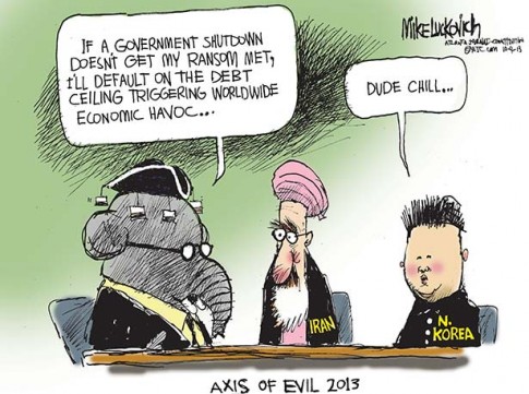 One result of all this, I hope, is that threats of government shutdowns or debt default will never again be used for political extortion– by either party. This would be as good for future Republican presidents as it is for Obama and future Democratic presidents. Unfortunately many of the current crop of Tea Party loyalists don’t think in such rational terms.