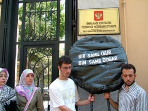 The IHH even placed a wreath for Basayev outside the Russian consulate: