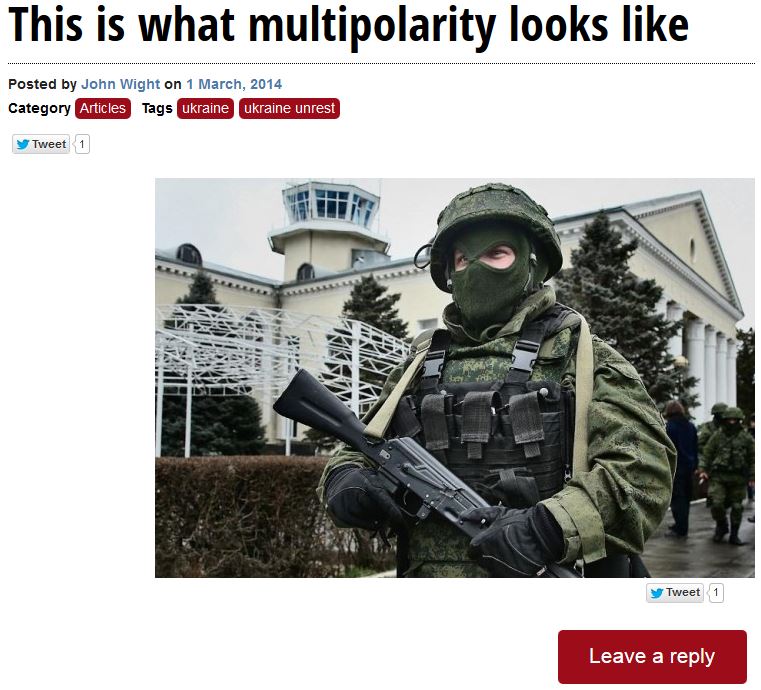 Update: John Wight’s tribute to the masked Russian soldiers in Crimea was apparently too much for his comrades at Socialist Unity, who took it down.