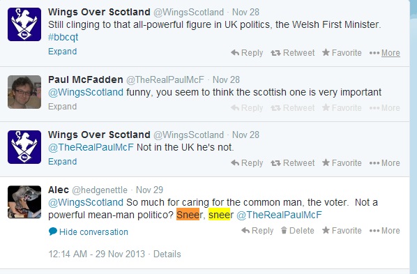 First off, I think Stuart Campbell aka RevStu of Wings Over Scotland is an idiot. A ridiculous buffoon who is a living embodiment of the adage of what happens when someone merely thought of as a fool opens his moosh. A pathological tribalist. A truly ignorant – in the pejorative sense as opposed to forgivable lack of knowledge of a specific topic – individual who, when he encounters summat he does not fully understand (which happens often), reacts with snarling aggression and scorn: one who is wont to blunder into a conversation to spk hiss branes only to be comprehensively refut/rubbished (again, summat which happens often), where he responds with histrionically outrage. Someone whose political expressions are more visceral and reflexive than intellectually considered, and instinctively demonstrative of an analogue of ugly nationalist bigotry.