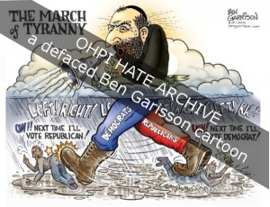 Garrison’s original cartoon could be said to tap into antisemitic tropes itself, but I assume, as Garrison seems so honestly indignant to have his work coopted by racists, that he is unaware of the connotations of the words and images he uses.