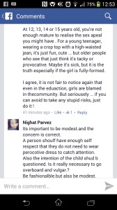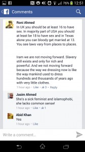 The screenshots are taken from post on the BBC Asian Network’s page onThursday, when presenter Nihal Arthanayake hosted a discussion show asking ‘Should parents let teenagers dress the way they want?’ Perhaps young girls should start wearing a burqa, as one Saudi cleric suggested – better to be safe than sorry, eh?