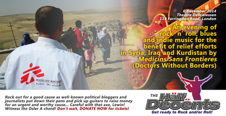 On Saturday, 6 December, a band composed of bloggers, journalists and political activists from across the political spectrum will be playing a gig to support Medecins Sans Frontiers (Doctors Without Borders) and their vital work in the region.