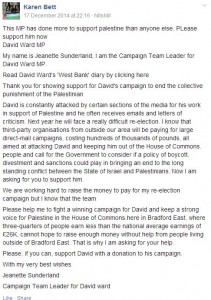 Please help me to fight a winning campaign for David and keep a strong voice for Palestine in the House of Commons.here in Bradford East, where three-quarters of people earn less than the national average earnings of £26K, cannot hope to raise enough money without help from people living outside of Bradford East. That is why I am asking for your help.