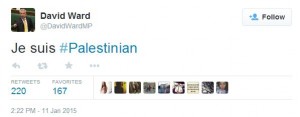 David Ward MP on Twitter takes the occasion of the murder of French Jews to declare his solidarity with Palestine. That’s why you should give him money.