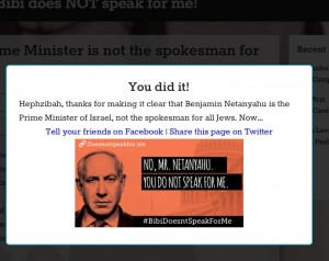 Just to test it out, I invented myself a name, Hephzibah Mouse, and a matching gmail address. I also found an example US zipcode using Google and put it on the petition form. Bingo! I duly got confirmation from the JStreet site congratulating Hephzibah Mouse for letting the world know that Benjamin Netanyahu does not speak for her….