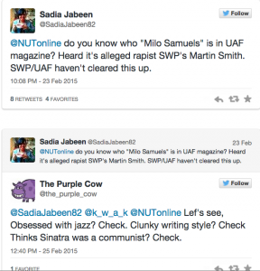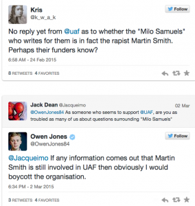 Credit for Owen Jones for saying he will boycott UAF if it turns out Smith is still involved. I wonder why he’d be involved with them anyway, as the whole purpose of UAF now seems to be helping SWP launder their reputation.