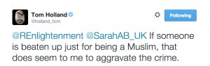 This story first broke a while ago now, but there seems to be a renewed flurry of interest in the issue, if little agreement as to what precisely Ed Miliband meant when he expressed his wish to clamp down on Islamophobia. Tom Holland’s tweets highlight this ambiguity: