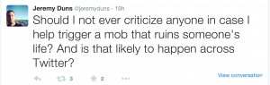 There seem to have been over-reactions on both sides (rather as with the Rosetta Mission shirt), but I agree with Jeremy Duns, here pushing back against the rhetoric against twitter ‘mobs’.