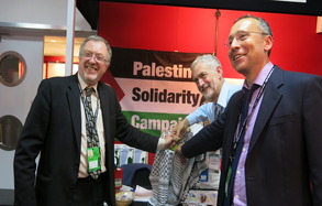 Labour MPs Richard Burden, Jeremy Corbyn and Andy Slaughter doing their bit for the PSC at a Labour party conference