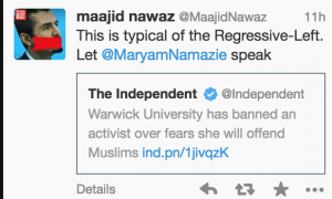 Maryam often describes the true facts concerning her own experiences and those of people she works with in relation to radical forms of Islam – not all forms of Islam, just those pernicious, radical strands of the religion – things that most peaceful Muslims would also condemn. I must profess that if those facts are an incitement of hatred – which I most definitely believe they are not – then the solution is to change the way people are treated in certain faith communities, not to insist Maryam lie about her life through censorship.