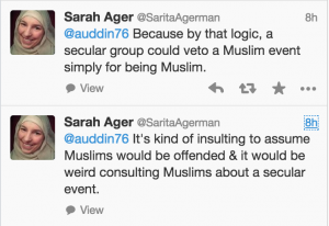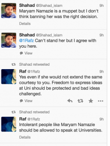 Whereas some Muslims on Twitter have gleefully welcomed the silencing of a ‘hate preacher’, and others, as we have seen, unreservedly oppose the ban, other Muslims have been supporting  her right to speak freely while making it clear that they think her views should be challenged.