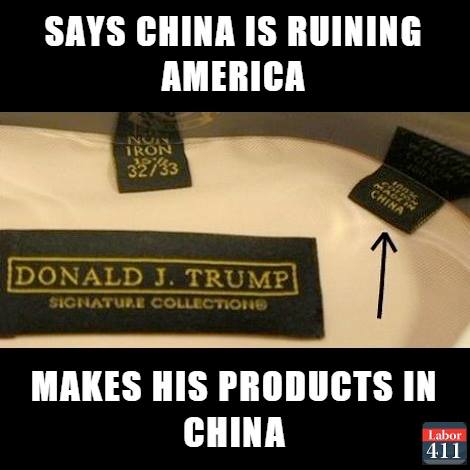 • Despite Trump’s constant talk about bringing manufacturing jobs back from other countries to the US, look where “Donald J. Trump Signature Collection” shirts are made.