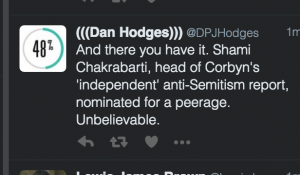 No great surprise, but this news further discredits Chakrabarti’s controversial report into antisemitism in the Labour Party, already dismissed by many as a whitewash. (A piece in today’s Jewish Chronicle claims that Baroness Royall was ‘carved out of the Chakrabarti report entirely.’) News of her elevation has been met with much disapproval and derision.